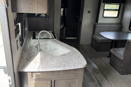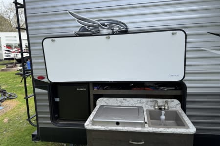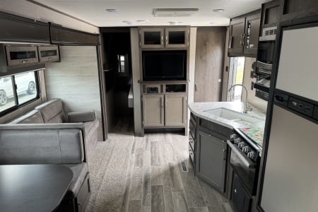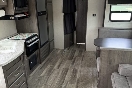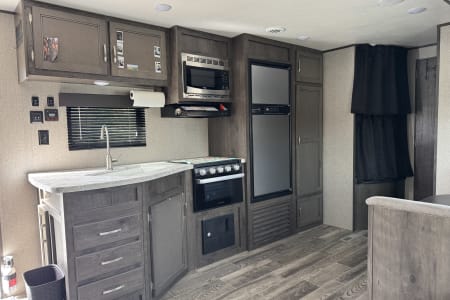 • Kitchen Ready to Go: You’ll have everything you need — a 3-burner stove, oven, microwave, fridge, freezer and plenty of pantry space for snacks and favorite meals. Plus outdoor kitchen with mini fridge, 2 burner stove and sink for outdoor cooking!