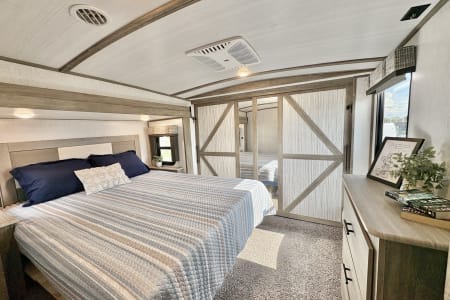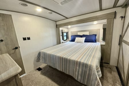 A queen-sized bunk in the loft area (sleeps 2 people).