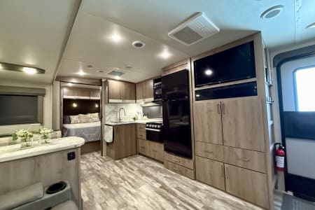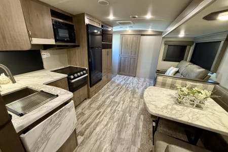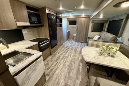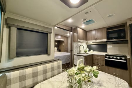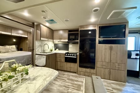 The 2022 Grand Design Imagine 2600RB is a luxury travel trailer designed for comfort and convenience, making it an excellent choice for couples or small families. At just under 30 feet, it features a spacious rear bathroom layout and a modern, open-concept living area.
