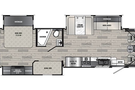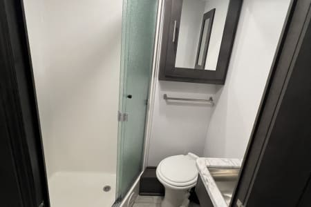 - Outdoor Entertainment – Full-body paint, power awning, exterior entertainment system, TV, and large storage compartments for all your gear.