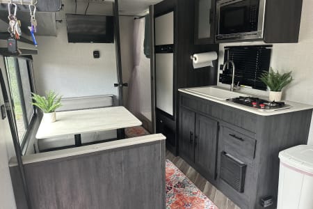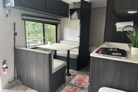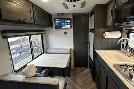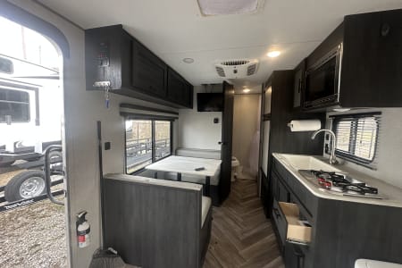 - Smart Layout & Features: The queen-size bed provides a restful night’s sleep, while the functional kitchenette allows for easy meal prep. Ample storage, a compact yet spacious design, and large windows make it feel open and inviting.