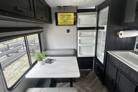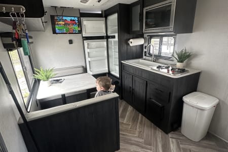 - Off-Grid Comforts: Stay warm with the propane heater and enjoy hot showers with the propane water heater. The efficient fridge keeps your food fresh, whether you’re plugged in or running on propane.