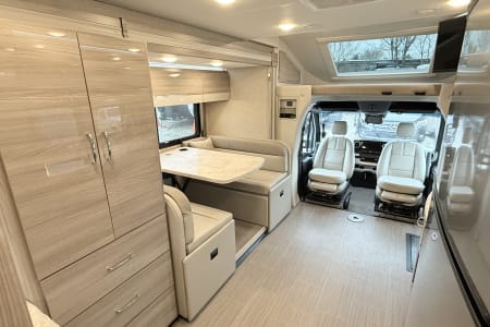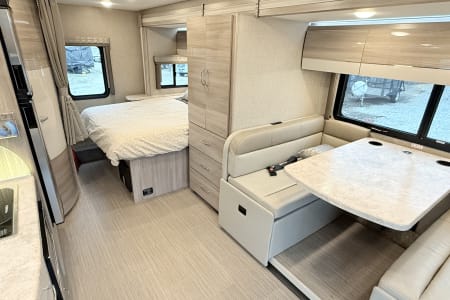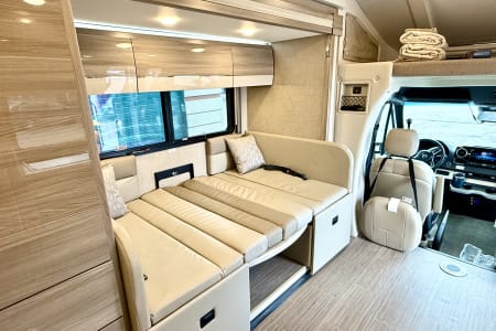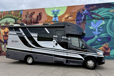 Get ready to hit the road in style and comfort with our beautiful 2023 luxury Mercedes Thor Delano 24TT! Whether you’re planning a weekend getaway in the local National Parks or beautiful nearby mountains, a cross country road trip, or an outdoor adventure, this luxury class C motorhome has everything you need to travel with ease. This rig has been very well kept, is nearly new and in great condition, and has all the accessories you could dream of!