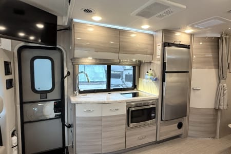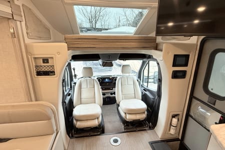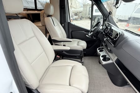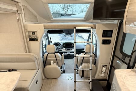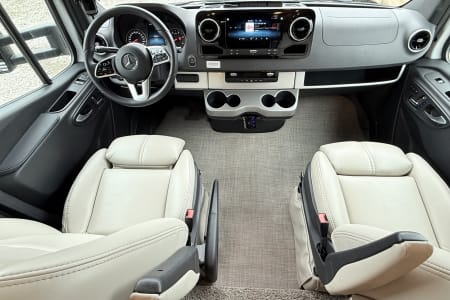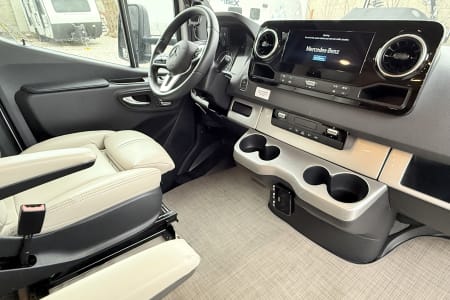 Equipped with an onboard generator, automatic leveling jacks with touch pad controls, full outside awning with LED lights, electric heated driver and passenger captain's seats that swivel, two TVs with HDMI and iPhone hook up, two burner stovetop, convection microwave, on demand water heater, an incredibly quiet AC and heating system, inverter, solar charging system with solar controller, propane tank, Mercedes-Benz multimedia dash radio with Bluetooth, Navigation, & SiriusXM capable stereo, and Winegard ConnecT 2.0 Wifi capable, you’ll have everything that you need in one package!