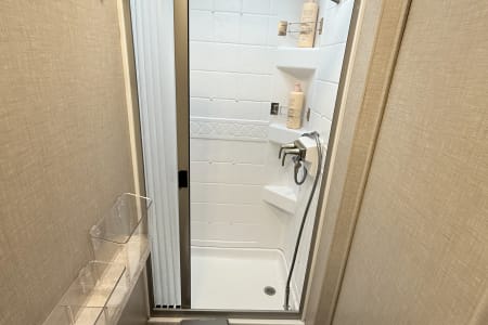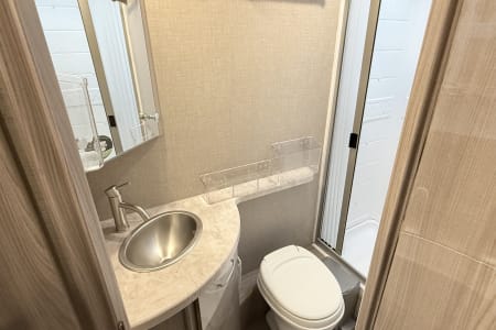 You will also be able to enjoy the privacy of your own full bathroom. No need for campground restrooms - you can enjoy your own private shower, toilet, and sink.