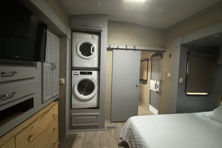 No need to worry about laundry during your trip—this 5th wheel includes a washer and dryer, making it perfect for long-term stays or family vacations.