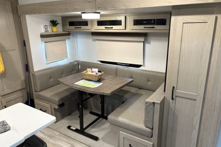 Picture yourself sinking into a queen-sized bed after a long day of exploring. With the 2024 Rockwood Mini Lite 2509S, you’ll wake up feeling rested and ready for another day of adventure. Double bunk beds allow you to bring the whole family. The U-shaped dinette also transforms into extra sleeping space for extra guests!