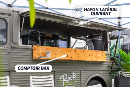 Il est équipé d'un hayon latéral ouvrant avec comptoir bar.