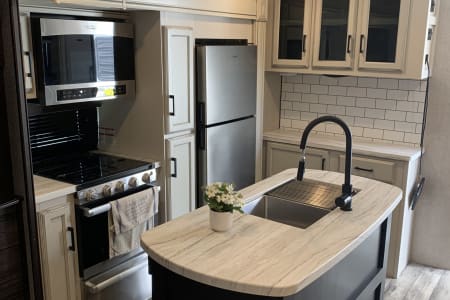 Experience the perfect blend of comfort and adventure with our 2022 Jayco Eagle 39’ Travel Trailer! It is currently being stored in New Braunfels, Texas. This premium RV is designed for families, couples, remote workers and temporary to mid-length living for those who want a spacious and well-equipped home on wheels. Due to the size this rv has a minimum 4-night rental.