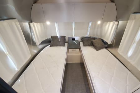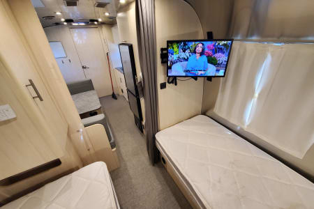 2023 Airstream flying cloud 23fb. Front separate twin beds very unique floorplan. This trailer was close to $100,000 new. Rear bathroom spacious with bench to sit while showering. Large u-shaped Dinette with adjustable table. Window shades. Solar with charge controller and inverter system. Only 5,000 lb so it can easily be towed with a half ton truck or suv. Weight distribution hitch and Generator available.