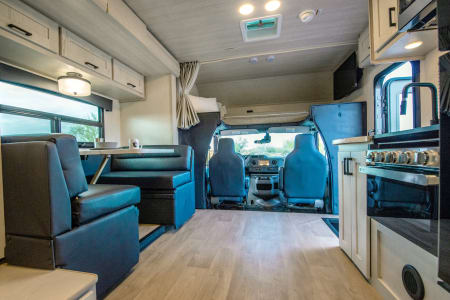 The Nexus Triumph 24TS is packed with features that make even the most discerning traveler swoon. The sleek exterior and aerodynamic profile compliment the functional interior: a spacious bathroom, queen sized bed, an over- the -cab bunk for the kids or extra guests, a spacious banquette dining area, a roomy kitchen, high-end finishes throughout and huge storage compartments. From its spacious living area and fully equipped kitchen to its comfortable sleeping quarters and spa-like bathroom, this motorhome has everything you need to live the life of luxury on the road.