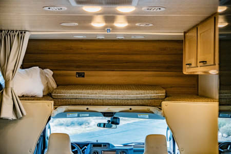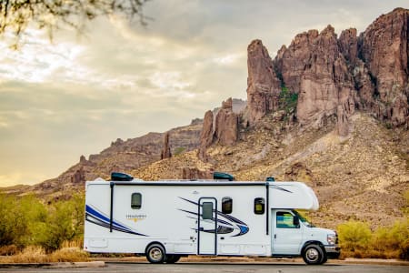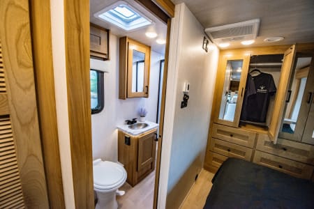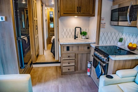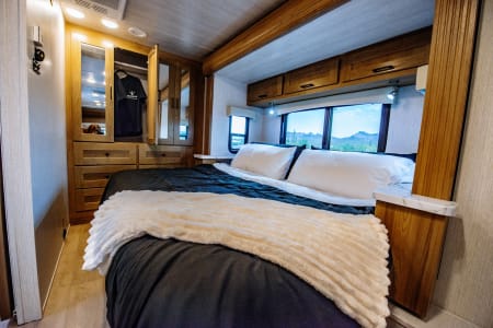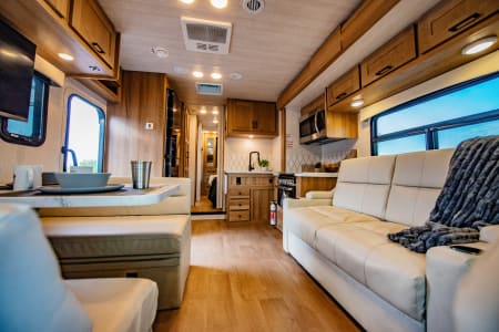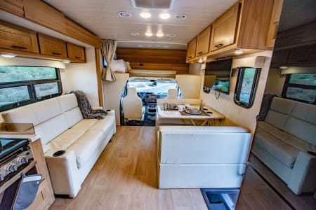With sleeping space for 8, this gorgeous RV is perfect for large families or friends traveling together. The large kitchen has plenty of room in the fridge and on countertops to make meal prep a breeze. The spa-like bathroom has a flushable toilet, separate full-sized shower, and plenty of storage. The Nexus Triumph 29T is built on a Ford chassis and handles well, even for new RV drivers. This motor coach combines luxury, space, and comfort for an unforgettable vacation. Reserve it for a long weekend or a cross-country adventure and breathe easy, because you will never be cramped.