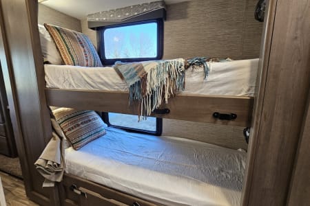 Kitchen comes with the essentials (service for 10), bedding and pillows can be provided for an additional fee (you're welcome to bring your own), bicycle rack holds up to 4 bikes, 40 Gal of fresh water, 28 Gal Grey, 28 Gal Black, electric & gas water heater, gas furnace, and dual A/C.