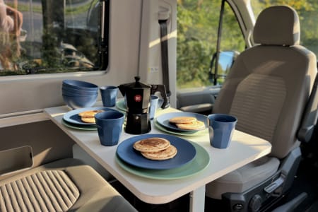 The camper comes with a full kitchen inventory. We also offer some extras for rental during your trip (against a rate) so you only need to bring your personal items (see below). We also have some decorations inside the camper depending on availability (such as flower pots, plaids, cushions, and lighting)