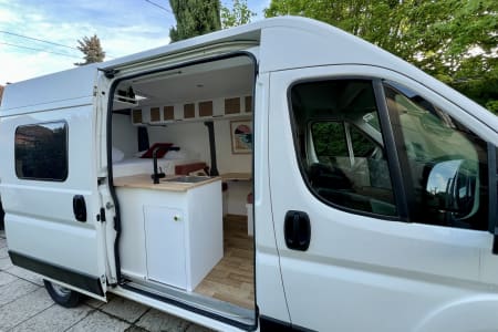 🚐 Le véhicule est un Peugeot Boxer L2H2 145ch en boite manuelle avec aide au stationnement (caméra de recul) et à la conduite (régulateur de vitesse, aide au démarrage en côte, feux automatiques, rétroviseurs rabattables, détection de franchissement de ligne)