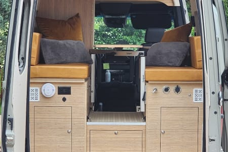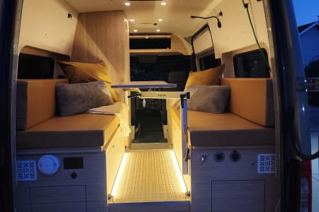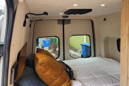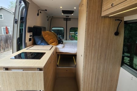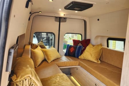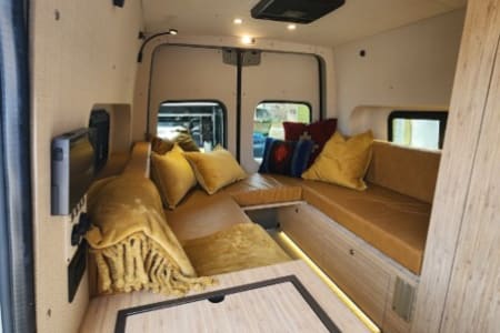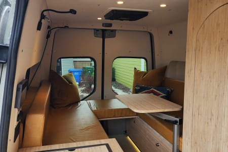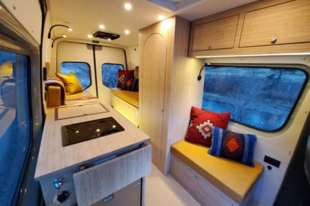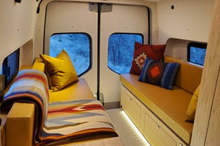 Meet Lino – Your Ultimate Adventure & well equipped escape Lino is an amazing, professionally designed new build that blends adventure with comfort, offering a cozy yet functional layout. The spacious booth dinette at the back comfortably seats up to seven, making it the perfect spot for lounging, working, or socializing. After a long day of exploring, sink into an queen bed with a plush 4-inch padding for the ultimate rest. Stay comfortable year-round with a top-of-the-line ventilation system, air conditioning, and heating. Every detail has been professionally designed to maximize your ease and enjoyment, with hand-finished bamboo cabinets and ample storage throughout. Unmatched Comfort & Convenience Versatile Bathroom: A shower-and-bathroom combo that cleverly converts into a closet when needed. The dry-flush toilet means no mess no pumping or dump stations, ever! Indoor and two outdoor showers: One at the side entry and another at the back Customizable Front Space: Choose between a bench chair with a desk OR extra room for amenities like a large dog bed. Your choice, your comfort! Superior Insulation: Lino is built for all seasons, with excellent insulation—including floors—to keep you cozy no matter the weather. With over 300 watts of Solar, this beast can be off grid for over a week and if plenty of sunshine this can extend to weeks. Explore Freely & Stay Powered with Turbo Diesel. Rugged & Reliable: All-terrain tires for summer, snow tires for winter, and sturdy running boards for easy access. Power That Lasts: Never worry about running out of power—solar panels charge automatically, and the alternator kicks in when you drive. Tech-Ready: Plenty of outlets and USB ports to keep your devices charged. Gourmet On the Go: Cook with ease using the induction stove and toaster. Pet-Friendly & Adventure-Ready Pets are welcome!. Lino also offers ample storage and blackout window covers for a peaceful retreat. If you have any questions, feel free to reach out—I’m happy to help!