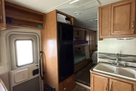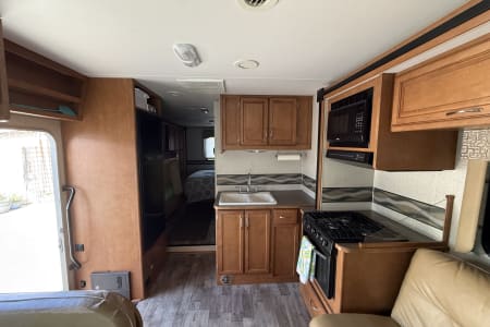 This RV is easy to drive and equipped with a backup camera, air conditioning, heat, generator, TV/DVD player, and ample storage throughout. It’s ideal for long road trips, weekend getaways, or just relaxing at your favorite campground.