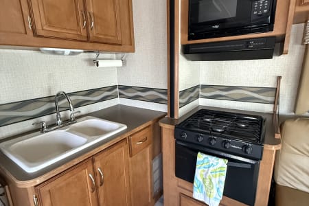 Our 2017 Winnebago Minnie Winnie 31H is the perfect home-on-wheels for families, friends, or couples looking to explore in comfort. With sleeping space for up to 10, this Class C RV offers a queen bed in the private rear bedroom, twin bunk beds, an over-cab bunk, a jackknife sofa, and a convertible dinette.