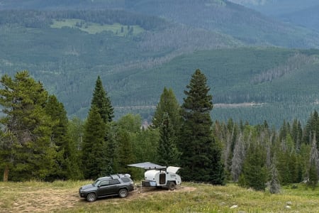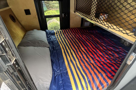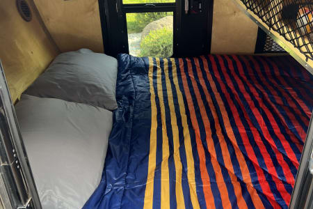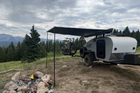 Our teardrop comes packed with amenities that allow you to camp off-grid the second it is picked up. This unit has an outdoor kitchen sink with 10 Gallons of fresh water, French press, camp stove, 65-quart YETI cooler, OVS Awning, all the cooking utensils needed to both cook and eat, USB charging ports, outdoor lighting, and rear tow hitch for bike racks.