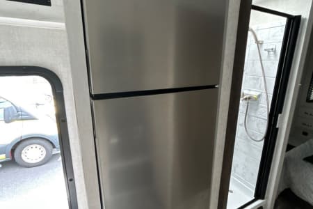 Fully Equipped Kitchen: Enjoy a three-burner stove, oven, microwave, large refrigerator, and ample counter space for meal prep on the go.