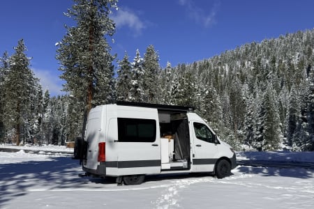 Welcome to Squirrel Patrol. Our 2019 Mercedes 144 Sprinter is ideal for 2 people. It’s super cozy with a radiant heated floor as well as a tucked away air conditioner, all running off the 500 watt rooftop solar array and (4) 100amp lithium batteries. Ask us any questions about our listing: the foldout Murphy bed, Lagun tables, swivel passenger seat, insulated window coverings, fridge with mini freezer, induction cooktop…the list goes on!