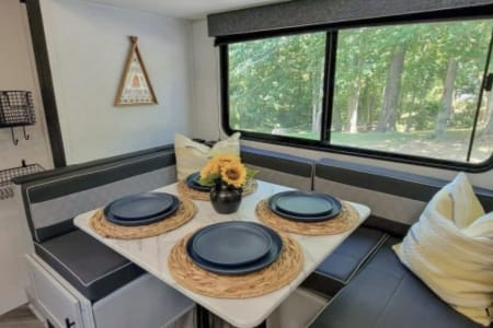 Whether you're looking for adventure or soaking up some quiet time in the 828 of Western North Carolina … whether it’s in the heat of summer (with A/C!) or in the dead of winter (warming up with the electric heater!), this travel trailer is perfect for it all!