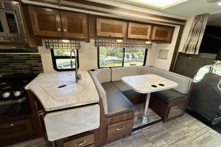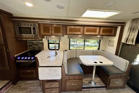 This is a great like new unit that is ready for the open road. Monterey Bay RV Rentals prides ourselves on fantastic experiences with our RV's. We encourage our renters to et out and go. This RV has 2 slides on the drivers side, the whole side slides out to make the floorplan feel open. The high 7 foot ceilings and the horseshoe dinette is great for a family or a couple.
