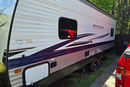 Like new, only took on two trips locally, decided not for us so trying to rent out so others can enjoy. Lots of local great spots at the lakes or very light load to easily haul across country. Has solar panels so could even go off grid. Power everything so very easy to maneuver.