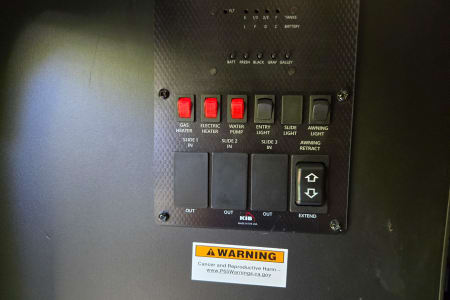 No Slide outs. 1 Power Awning. Leveling Jack Front and Rear Power. 6 Sleeping count. 1 Queen bed and 2 convertible beds. Master has privacy curtain. 2 TVs 1 Radio/CD Player. Lots of storage underneath and under bed, couch.
