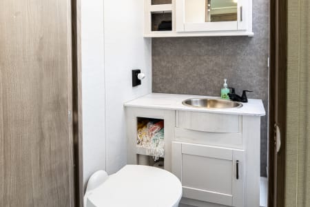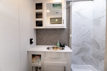 ~Private Full Bathroom – No campground lines here! Enjoy a spacious shower, sink, and toilet—just like home.
