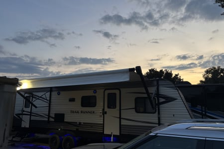 Take this camper just about anywhere. It's the right size for camping in major campgrounds or getting into harder parking places. At night, you are greeted with led lights that clearly distinguish your camper from others. The bathroom has its own exit door allowing guests to easily access without walking through your family space. There is a queen bed up front, double bunk beds in the back and another conversion double with the dining area.