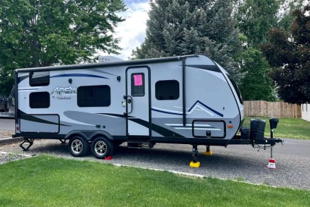 Whether you’re soaking up the sun at the beach, breathing in crisp mountain air, or unwinding at a quiet local campsite, camping in this travel trailer makes every trip feel like home—only better. Spacious and fully equipped, this trailer comfortably sleeps up to seven, offering cozy sleeping areas, a compact kitchen, bathroom, and a cozy eating space. Enjoy mornings with coffee under the awning, days filled with adventure, and nights around the campfire. With the freedom to travel and the comforts of home, it’s the ultimate way to explore the outdoors with family or friends.