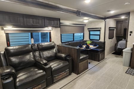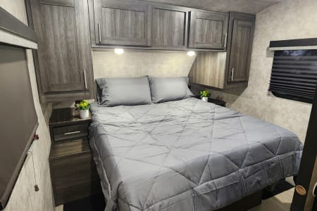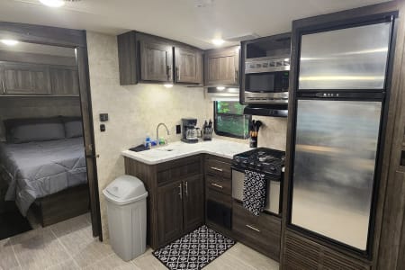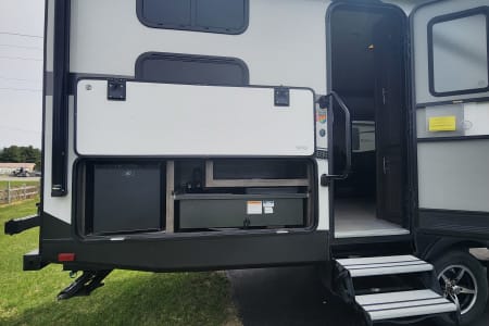 This well maintained 2018 Mesa Ridge lite with a unique layout is perfect for your next family vacation or adult getaway. Located in beautiful Grand Traverse County, just 20 minutes from downtown Traverse City. Our trailer is equipped with a very private and spacious master bedroom located at the front of the trailer, which is large enough to walk around both side of the bed. There you will find a large queen camper bed with a very comfortable foam mattress topper, two night stands with storage and a large storage compartment above. The kitchen/living area includes a large slide out with two comfortable recliners and a large convertible dinette. The kitchen includes a double sink, microwave, refrigerator/freezer and a three burner range with an oven. This camper also provides a small outdoor kitchenette with a mini fridge, small 2 burner and a sink. There is also a small grill that attaches to the camper. The trailer can sleep 8, but we would recommend 6 to be comfortable. Please make sure your campsite can accommodate our trailer length 31.7 feet. If we arrive and are unable to back into the campsite there will be no refunds. If you are at a site with no sewer hookup there is a $50 dumping fee for residential stays it is $200. There will also be a $100 fee if we are requesting to fill the water tank prior to delivery. Free delivery and set-up up to 30 miles from our location. Extended delivery offered for up to 40 miles from Traverse City $175.
