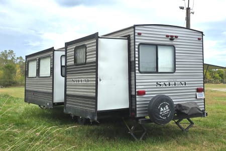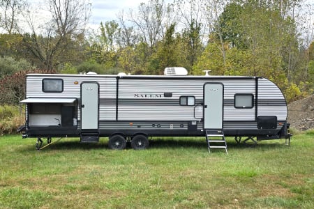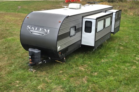The 2019 Forest River Salem 32BHDS is the ultimate family-friendly travel trailer, offering comfort, space, and smart design for unforgettable getaways. With dual slide-outs and a private bunkhouse, this model easily sleeps up to 10, making it perfect for larger families or group adventures. The spacious main living area features a U-shaped dinette, sofa, entertainment center, and a fully equipped kitchen with ample counter space. Up front, the private master bedroom offers a restful retreat, while the rear bunk room gives kids or guests their own space to relax. An outdoor kitchen and power awning extend your living space outside, making the 32BHDS ideal for everything from weekend escapes to extended stays in the great outdoors.