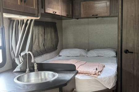 Experience the open road in our 25 ft 2020 Winnebago Minnie Winnie! This spacious Class C RV comfortably sleeps up to 5 adults, featuring a cozy queen bed with a new mattress, a dinette that converts into a bed, and a convenient top bunk for extra sleeping space.