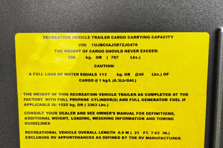 Camper Trailer Loaded Weight - 4,150lbs (luggage, fresh water, cargo)