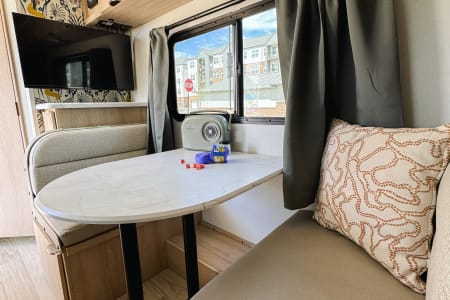• Comfortable bed (Full) + dinette that converts to extra sleeping spaced