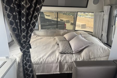 Imagine walking up surrounded by nature, enjoying your morning coffee in a fully equipped kitchen, relaxing on an ultra-comfy queen-sized bed, or watching the sunset from de cozy dinette. All while traveling with the legendary Airstream craftsmanship and aerodynamic design.