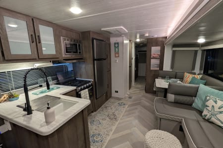 Welcome to our 2022 Forest River Salem 32BHDS—a coastal-inspired retreat on wheels, designed to bring the comfort of home to the heart of the outdoors.