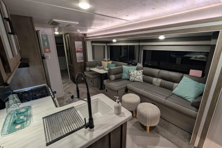 Whether you're parked beneath towering pines, lakeside under the stars, or steps away from sandy shores, this spacious travel trailer offers the perfect launchpad for your next great adventure. With room for the whole crew (sleeps up to 10!), it's ideal for families, couples, or friends seeking a getaway filled with connection, comfort, and unforgettable memories.