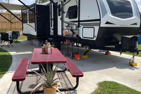 Connect is modern and sleek with an affordable price tag! It comes standard with a king-size bed, residential-size kitchen, and entertainment center. The bunk room which includes two single upper bunks and a small dinette which can be converted into a bunk plus the kiddos will have their own toilet and sink for it has a half bath. In the living room you will find that there is an electric fireplace and an upgraded dual reclining sofas. Outside you will find a full-fledge outdoor kitchen with mini fridge.