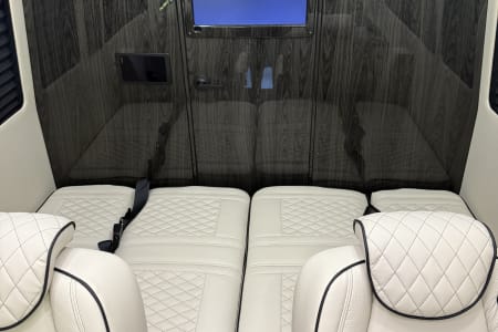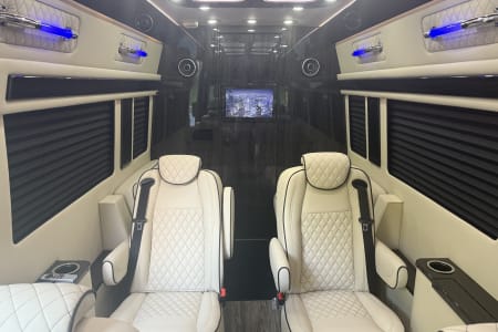 Our Ultimate Coach Sprinter comes fully equipped with all the amenities and is designed with comfort, luxury, and style in mind. The beautifully handcrafted and custom interior will make you think you’re on a private jet. Ideal for busy executives with a demanding lifestyle, the Ultimate Coach is perfect for getting more done on the road, entertaining business clients, using for a night out, or enjoying family vacations.