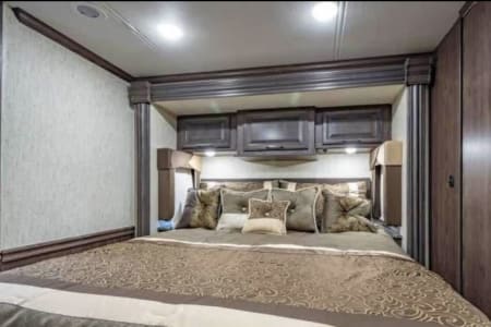 2019 Coachmen Sports coach 409bg. This coach features three slides. a full slide on the Passenger side and on the Driver side there is a kitchen slide and a master bedroom slide. The bunks are single beds, the master bedroom has an RV king size bed with it's Own Shower and Toliet. With all the slides out there may even be some room for an air mattress. This Coach can Run on electric Only, no worries about running out of propane. There are 2 AC units and the master bedroom unit is also Both have a heat pump in case you need a little extra heat. The motorhome has WIFI boost, it is cable ready if the camp ground provides cable, All TVs are Samsung Smart Tv's. We use T-Mobile for our cell service and that provides us with plenty of hotspot data for steaming movies from the internet. There are two full bathrooms, both have showers, sorry no tubs. There is a two burner induction cooktop, (pots and pans provided), convection microwave, mom can still bake cookies, if there is a spill that requires a little laundry there is even a washer and dryer in the master bedroom. There are four TV's for entertainment, one in the master bedroom, mid section of the coach and one above the Driver Section, and it want to catch that special sports event while out doors, there is a out door TV. And there is plenty of storage below to bring along the extra things you need to make your adventure special. Feel free to reach out with any questions.