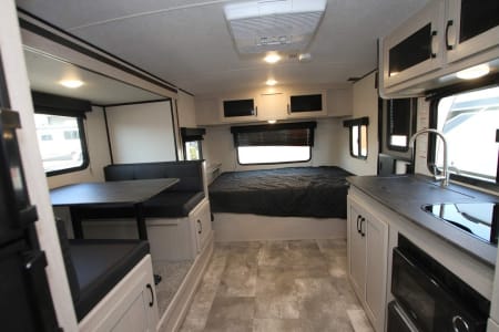 This camper is pet-free, smoke-free, and always thoroughly cleaned after every trip. We’re happy to help you get familiar with everything so you feel confident and ready to roll!