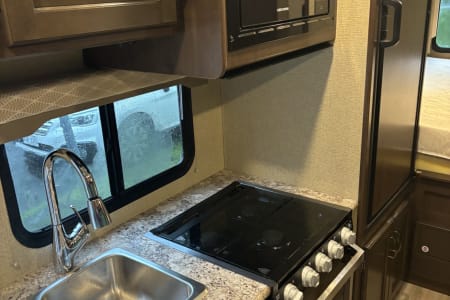 🍳 Full kitchen – Includes a 3-burner stove, oven, microwave, fridge/freezer, and plenty of counter space