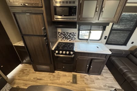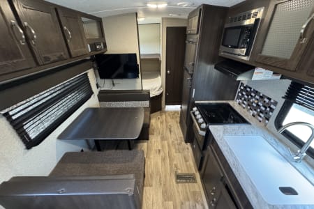 The 2020 Keystone Springdale 260BH is a family-friendly travel trailer designed for comfort, function, and value. With sleeping space for up to 8 people, it’s perfect for larger families or group camping trips. The layout includes a front queen bed, rear double-over-double bunks, and both a convertible dinette and sofa. The kitchen is equipped with a 3-burner stove, oven, microwave, and a 6 cu. ft. gas/electric refrigerator, making meal prep on the road easy. The bathroom features a tub/shower combo with a skylight for added headroom and natural light. Outside, you'll find a power awning, large pass-through storage, and exterior speakers—ideal for outdoor living. Lightweight for its size and loaded with features, the 260BH is a reliable and affordable option for adventure-ready families.