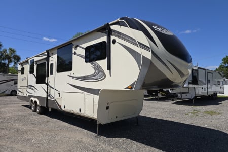 This unit requires a minimum of 50 amp service. No generator usage and NO Boondocking. This RV can sleep up to 6 adults. We can deliver this 5th wheel to you today! Rent this RV today and focus on the adventure, we got the rest!