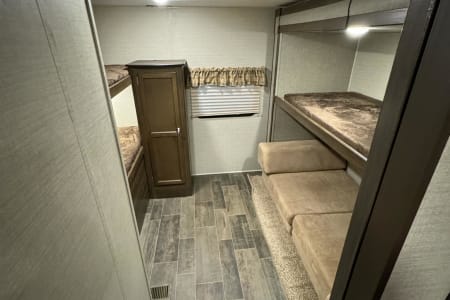 Big adventures start here! Our 2019 Keystone Bullet 308BHS is your home away from home, packed with space, style, and all the comforts you need. With a private queen bedroom up front and a separate bunkhouse in the back, this camper is perfect for families, groups, or anyone who loves camping without roughing it.