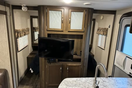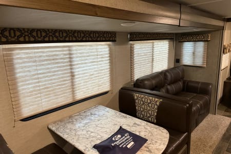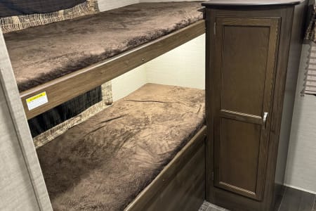 This camper is roomy, modern, and family-friendly. With two slide-outs, a private master bedroom, and a separate bunkhouse for the kids, there’s space for everyone to stretch out and enjoy the adventure. It sleeps up to 10 people comfortably, making it ideal for larger families or group trips.