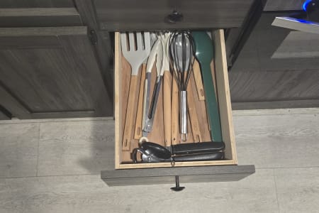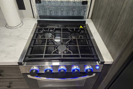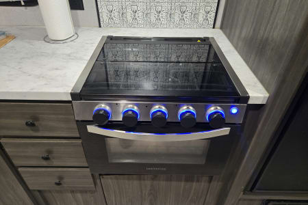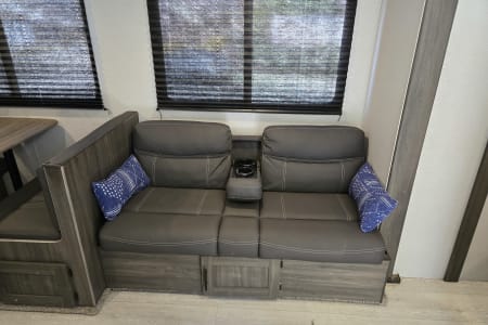 There is LED lighting across the exterior of the trailer for the evening and a beautiful retractable awning for the daytime as well. The best thing is everything is controlled with the push of a button!